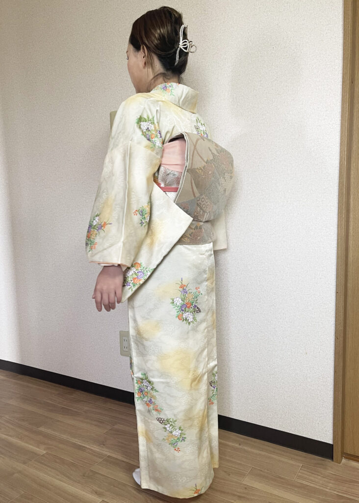 赤ちゃんを抱っこされるため、動きやすく着崩れしにくい着付けを心がけております。