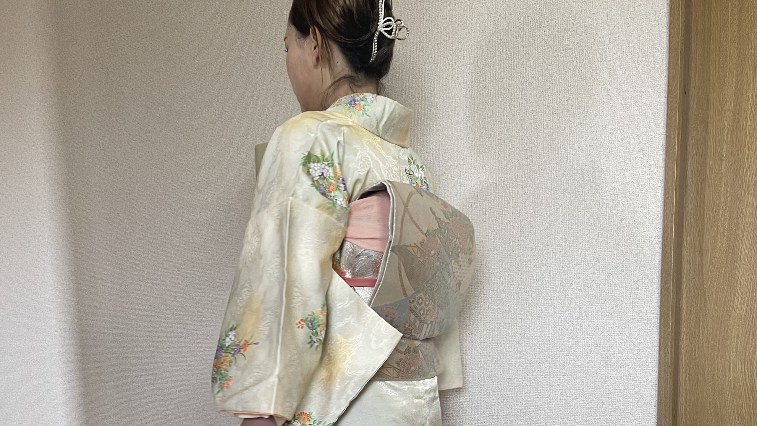 お宮参りにご出席されるお客様の訪問着の着付けで、橿原市のご自宅へお伺いしました。